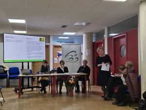 Po maši je sledila izvolitev delovnega predsedstva skupščine, vse prisotne pa je pozdravila in nagovorila predsednica DKPS Helena Kregar. Sledil je vsebinski del, ki ga je pripravil in vodil direktor Socialne akademije Matej Cepin. Predavanje z naslovom »Kam gre svet in kam naj gre DKPS« se je dotaknilo pogledov na hitre spremembe v svetu in na dvoumnost dogajanj in informacij, ki za nas pogosto predstavljajo veliko negotovost. Gre za neko dobo modrosti, ko moraš znati razločevati in presojati. Globoko smo se strinjali z mislijo pokojnega papeža Frančiška, ki je zapisal: »Danes ne živimo le v dobi sprememb, ampak v spremembi dobe.«