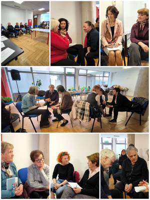 V drugem delu smo se dela lotili po skupinah in nato še v trojkah ter skušali analizirati trenutno stanje tako v našem društvu kot tudi na splošno na področju krščanstva, šolstva in države. Oblikovali smo nekaj smernic, zlasti kako privabiti v društvo nove, predvsem pa mlade člane. Kaj jim ponuditi, da se bodo čutili ne le sprejete, pač pa tudi koristne, in kako z informacijami in revijo Vzgoja prodreti do širšega kroga ljudi, zlasti pedagoških delavcev.