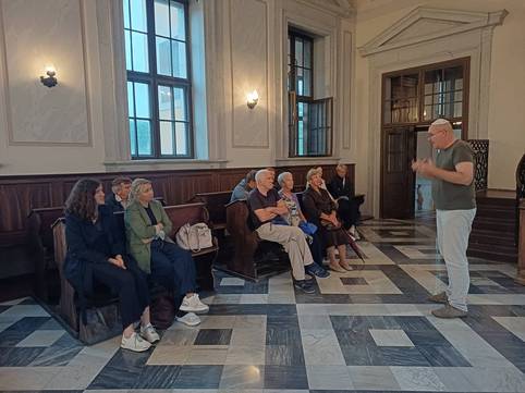 V torek, 23. septembra 2025, smo si ogledali sinagogo v Gorici. Kljub močnemu dežju se nas je zbralo lepo število zainteresiranih, ki smo želeli prisluhniti dobremu poznavalcu judovstva, zgodovinarju, dr. Renatu Podbersiču.