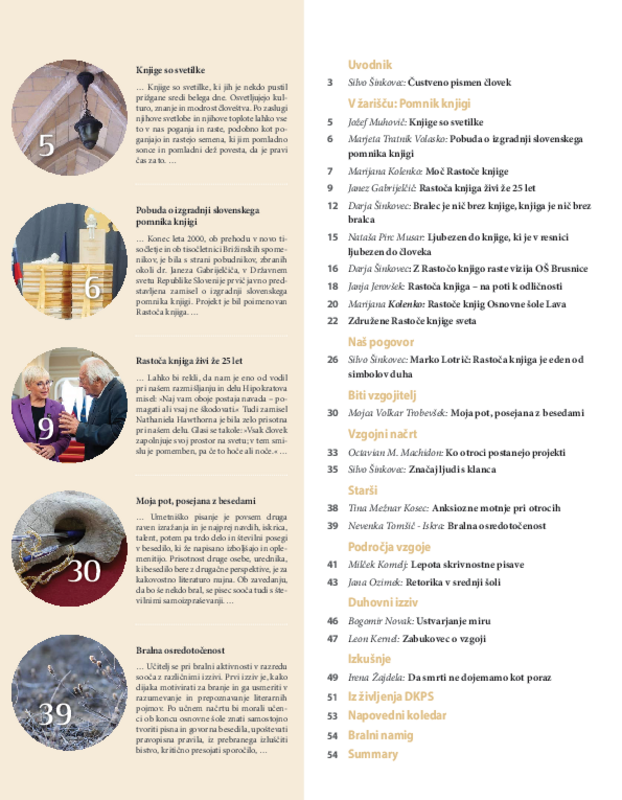 V rubriki Starši Tina Mežnar Kosec opiše anksiozne motnje pri otrocih. Nevenka Tomšič - Iskra je svoj članek usmerila v bralno osredotočenost.