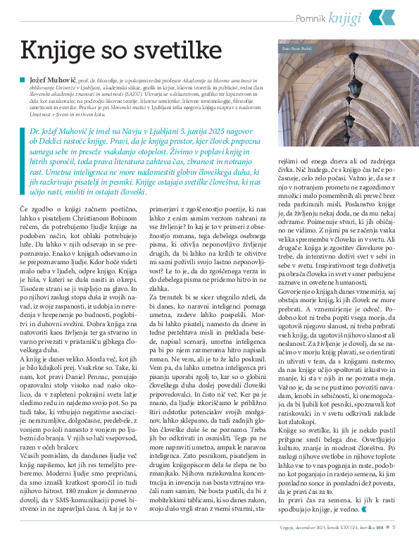 V rubriki Področja vzgoje dr. Milček Komelj predstavi sliko Mali b slikarja Janeza Bernika. Jana Ozimek z nami deli izkušnjo poučevanja retorike v srednji šoli in jo osvetli s primeri iz prakse.